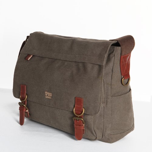 Ⓤ Handbag Queen UK - Grand sacoche marron unisexe sac ordinateur portable toile messager "Troop London" 2 boucles