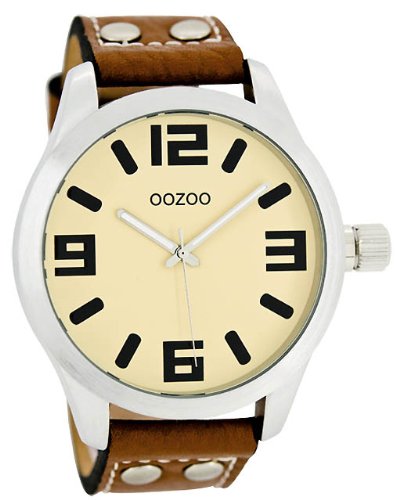 Ⓘ Oozoo XXL Montre pour Femme par Reliure en Cuir - C4707 - Crème/Cognac